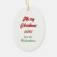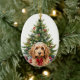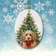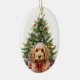 On the front of this Holiday ornament is the image of a cute buff colored Cockapoo Dog wearing a festive red bow. Behind the dog is a decorated Holiday tree. On the back, red and green text says MERRY CHRISTMAS", and there are additional text fields for you to customize. Make it say whatever you'd like!
