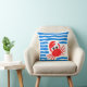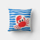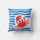 Cute Red Crab & Blue Waves Coastal Chowder Kissen