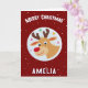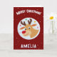 Cute Red Reindeer Kid`s Name Merry Christmas Karte