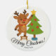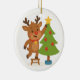 Cute Reindeer Decorating Tree Personalized Name Keramik Ornament