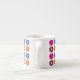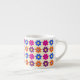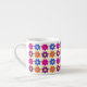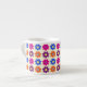 Retro style pattern of blue, pink, purple and orange penny flowers.