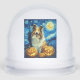 Cute Rough Collie Dog Halloween Jack O Lantern Pumpkin Face Starry Night Van Gogh Style