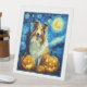 Cute Rough Collie Dog Halloween Jack O Lantern Pumpkin Face Starry Night Van Gogh Style
