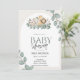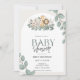 Cute baby shower invitations featuring adorable jungle and safari animals with eucalyptus leaves.