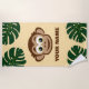 Cute safari monkey cartoon personalized kid's Beach Towel . Personalize with name, slogan or monogram letters. Available in different colors like brown, red black blue etc. Fun personalized gift idea for children. Unique Birthday or Christmas gift idea for boy, son, grandson, friend, nephew etc. Cheerful ape drawing with green palm leaves.