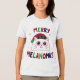 A super cute fluffy cat wearing a tiny Santa hat with bold “Merry Meowmas” typography. Bright festive colors and a mismatched pastel background make this the perfect Christmas T-shirt for cat lovers and holiday vibes.