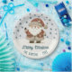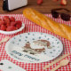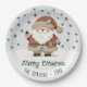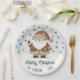 Cute Santa Clause Snowflakes Drawing Christmas Holiday Paper Plates. A cozy, Boho-inspired Christmas home decor featuring cute drawing of a Santa Claus on a snowy hill. Soft earthy tones such as terracotta, cream, and green. Delicate snowflakes are scattered across the plate, adding a touch of winter magic. The text 'Merry Christmas' is in elegant script. The overall aesthetic exudes a warm, rustic, and modern Bohemian feel, perfect for a stylish yet festive holiday look. Add your name and year.