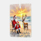 Cute Santa on Beach with Reindeer Personalized Ornament Aus Metall