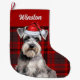 Cute Schnauzer Dog Holiday Plaid Personalized Großer Weihnachtsstrumpf