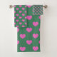 Cute Simple Preppy Pink and Green Heart Pattern Badhandtuch Set