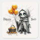 Cute Skeleton Girl with Pumpkin Balloons Quadratischer Aufkleber