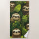 Cute Sloth Jungle Pattern – Green Leaf Design Strandtuch