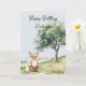 Cute Smiling Fox Field of Flowers Tree Birthday Karte
