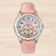 Lindo Diseño de Reloj para niña con ilustracion de un Lindo perezoso de color cafe sonriendo con un fondo Rosa y el Nombre de tu hija! Si tu hijoa esta aprendiendo a usar el reloj este puede ser un magnifico regalo. No dude y adquiera este lindo diseño para niños ahora.