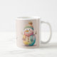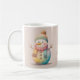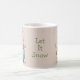 An adorable watercolor illustration of a cute snowman with a carrot-nose, a winter hat and a warm scarf, made of pastel colors, with a "Let It Snow" quote.