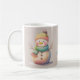 An adorable watercolor illustration of a cute snowman with a carrot-nose, a winter hat and a warm scarf, made of pastel colors, with a "Let It Snow" quote.