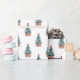 This festive wrapping paper features a cute, small Christmas pattern with pine trees covered in snow and colorful presents at the bottom. The white background color is customizable. Perfect for seasonal gift wrapping.