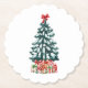 Add a touch of Christmas magic to your home with this cute seasonal coaster, featuring a classic snow-covered Christmas tree topped with a red bow and surrounded by festive wrapped gifts. This scalloped paper coaster is great for a Christmas dinner party with your loved ones.