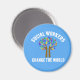 Sozialarbeiter verändern den inspirierenden Anführungsmagneten der Welt. Ein niedliches motivierend soziales Werk Zitat geschrieben um einen wunderschönen Baum von Regenbogen-Blätter.
