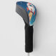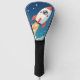Cute red and white rocket blasting off in space with whimsical stars and clouds.