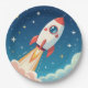 Cute space rocket blasting off pappteller