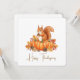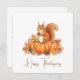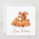Design features a watercolor illustration of a square with an acorn and pumpkins