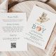 Cute Teddy Bear Astronaut QR Code Boy Baby Shower Einladung