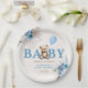 Serve your guests in style with these adorable paper plates, perfect for a boy baby shower! Featuring a charming teddy bear, a light blue balloon, and elegant blue and neutral boho-style florals with pampas grass, these plates are ideal for celebrating the arrival of a baby boy. They add a coordinated and festive touch to your party decorations, making cleanup a breeze.