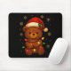Cute Teddy Bear Christmas Tree Lights Santa Hat Fu Mousepad