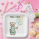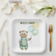 cute teddy bear green background pappteller