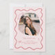 Cute Trendy Pink Wavy Border Graduation Dankeskarte