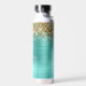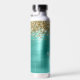 Cute Turquoise Gold Faux Glitter Monogram Trinkflasche
