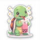 Cute turtle drinking boba. Funny Boba Turtles Love Aufkleber