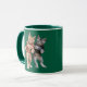A cute funny cat coffee mug featuring an orange and grey tabby dresses in 60's attire doing the twist.
