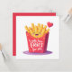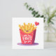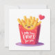 A cute and colorful cartoon illustration of a red French fries carton with a happy kawaii smiling face. The design features a floating red heart and the romantic funny pun quote "I only have FRIES for you". The image has a white sticker border, making it perfect for Valentine's Day greeting cards, fast food lovers, and humorous romantic gifts. Isolated design.