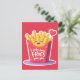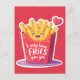 A cute and colorful cartoon illustration of a red French fries carton with a happy kawaii smiling face. The design features a floating red heart and the romantic funny pun quote "I only have FRIES for you". The image has a white sticker border, making it perfect for Valentine's Day greeting cards, fast food lovers, and humorous romantic gifts. Isolated design.