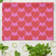 This kitchen towel features a bold, oversized heart pattern in vibrant red against a playful pink background. The saturated color palette give it a cheerful retro feel that brightens everyday kitchens. Perfect for Valentine’s Day styling, fun seasonal refreshes, or anyone who loves colorful, expressive home decor year-round.