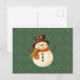 Cute, vintage green rustic snowman feiertagspostkarte