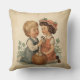 Vintage kids artwork on pillows that captures timeless childhood moments. A charming vintage-style illustration of children, perfect for nostalgic art and decor.