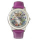 Cute Watercolor Cat Pretty Flowers Girly Watches features a cute cat sitting in pretty wild flowers. Created by Evco Studio www.zazzle.com/store/evcostudio