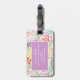 A beautiful luggage tag with a colorful, hand made pattern of watercolor blooming flowers.