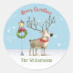 Cute Watercolor Reindeer Christmas Tree Card Runder Aufkleber