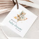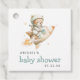 These cute baby shower favor tags feature a watercolor teddy bear dressed as an astronaut and riding a rocket ship, above the words "baby shower" in blue-green hand printing font. Personalize the text with the name of the mom-to-be and the date in charcoal gray sans serif.