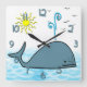 Cute Whale Kid's Square Wall Clock Quadratische Wanduhr