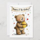 Cute Whimsical Teddy Bear Happy 1st Birthday Flat Karte