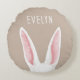 Cute White Bunny Ears On Beige With Kid's Name Rundes Kissen
