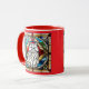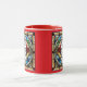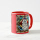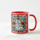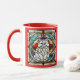 A cute funny cat coffee mug featuring a white Persian cat portrayed in stained glass.