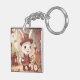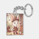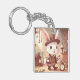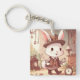 Cute White Rabbit Wonderland Whimsical Timekeeper Schlüsselanhänger