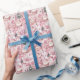 Wrap your gifts in enchanting holiday charm with this beautiful watercolor wrapping paper. This delightful design features a cute, repeating pattern of a festive Christmas village with cozy pink houses, snow-dusted trees, and sweet, smiling Santa Claus figures. The soft, artistic watercolor style gives it a delicate and whimsical feel, perfect for adding a touch of unique charm to your presents for Christmas. The delicate pink hues offer a fresh and modern twist on traditional holiday colors.