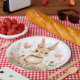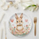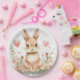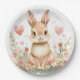 Cute Woodland Rabbit Pink Hearts Pastel Flowers Pappteller